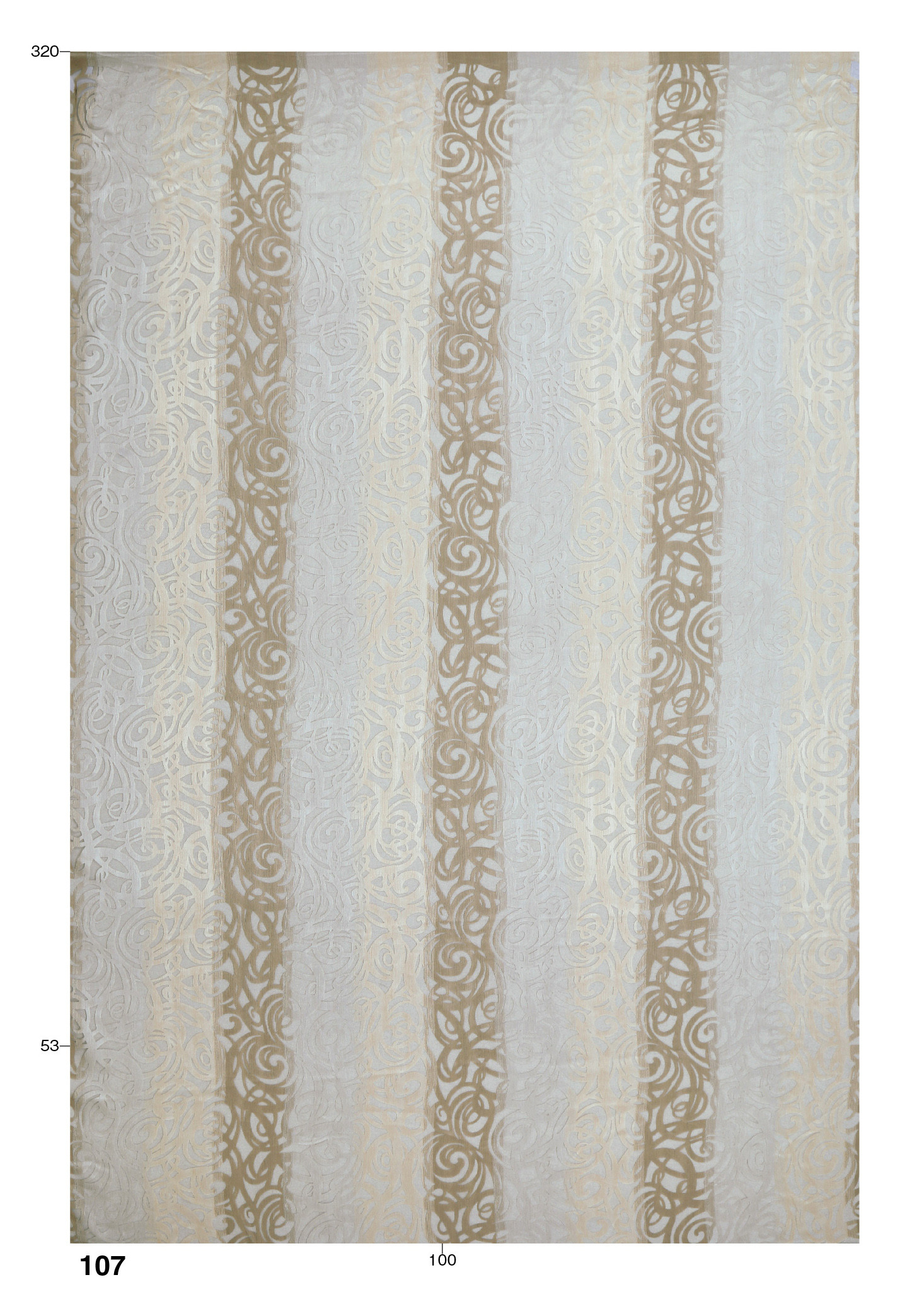 Free graphic sketches of ellipses adorn the VIRGOLA fabric. The floor-to-ceiling viscose burnout design is woven with a range of weft colours that lend the dégradé its depth. Since the background stripes have a different pattern than the printed motif, the result is a varied design that blends perfectly into its surroundings, thanks to its discreet colour scheme. VIRGOLA is made in Italy.