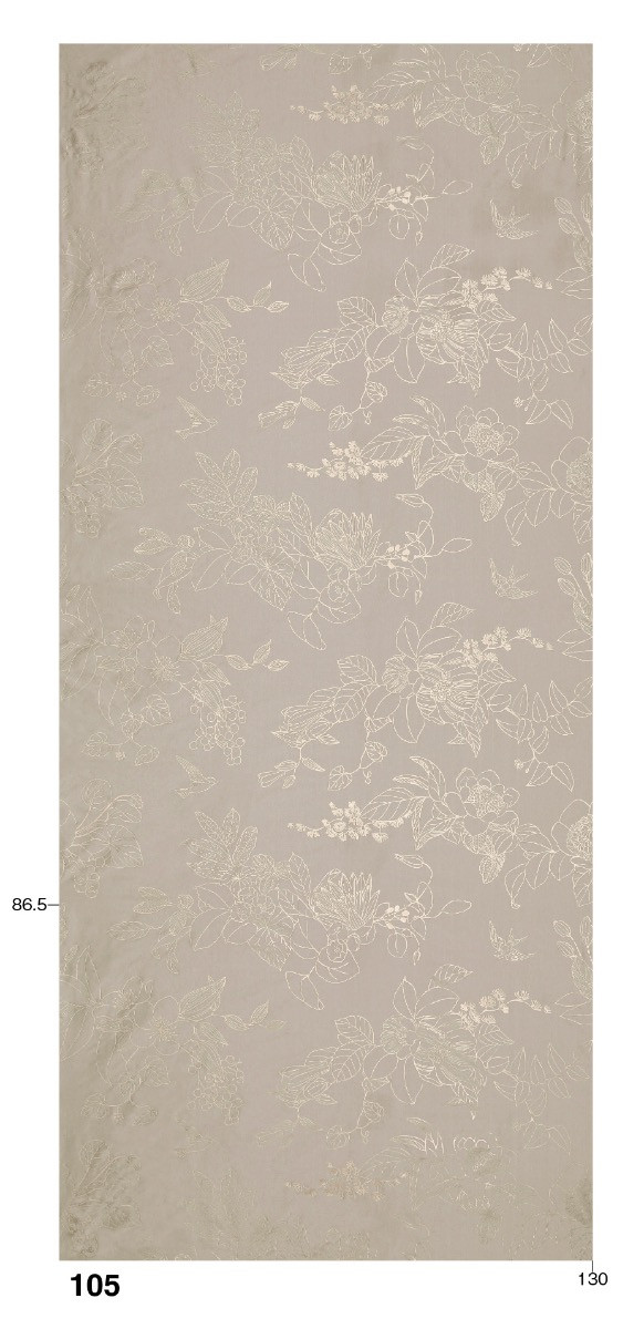 Il motivo HANA, che significa “fiore”, unisce influssi asiatici ed europei, tradizione artigiana e tecniche moderne, in una stampa tridimensionale su seta. Nasce attraverso un procedimento complesso, che prevede innanzitutto la stampa dei pigmenti colorati e della pasta di schiuma e l’applicazione del collante per la pellicola di trasferimento. Alle elevate temperature della successiva fase di stampa di trasferimento la pasta cresce, mentre la pellicola resta attaccata al collante. Infine il tessuto viene sottoposto a délavé. Il lieve bagliore della pellicola d’oro opaco conferisce al motivo HANA una luminosità opulenta. HANA viene prodotto in esclusiva in Svizzera.